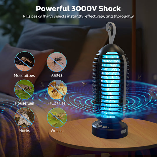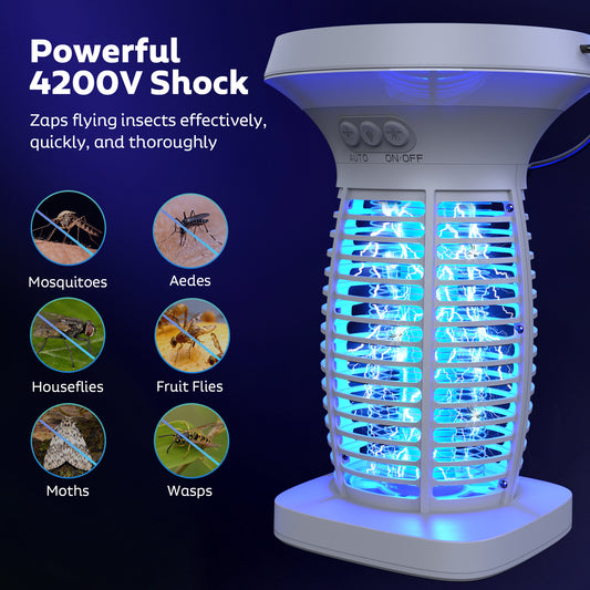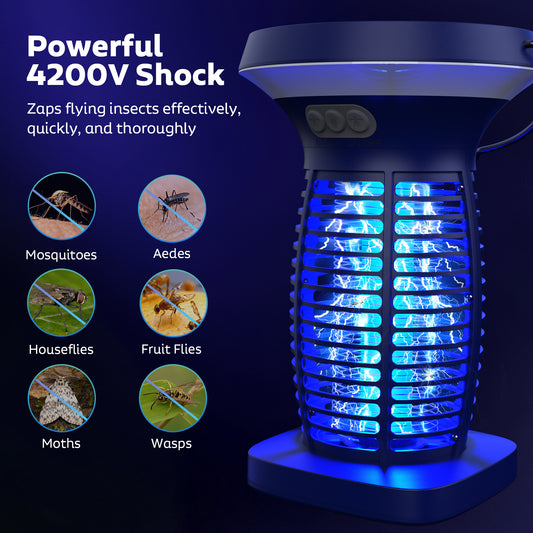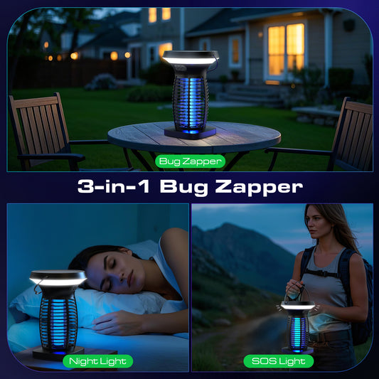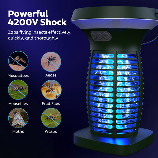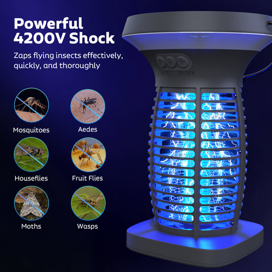 Solar Bug Zapper Outdoor, Mosquito Zapper Outdoor Waterproof Electric Fly Zapper Rechargeable Mosquito Killer with Solar Panel, 4200V Fly Trap Indoor for Home Backyard, Patio, Garden, Camping