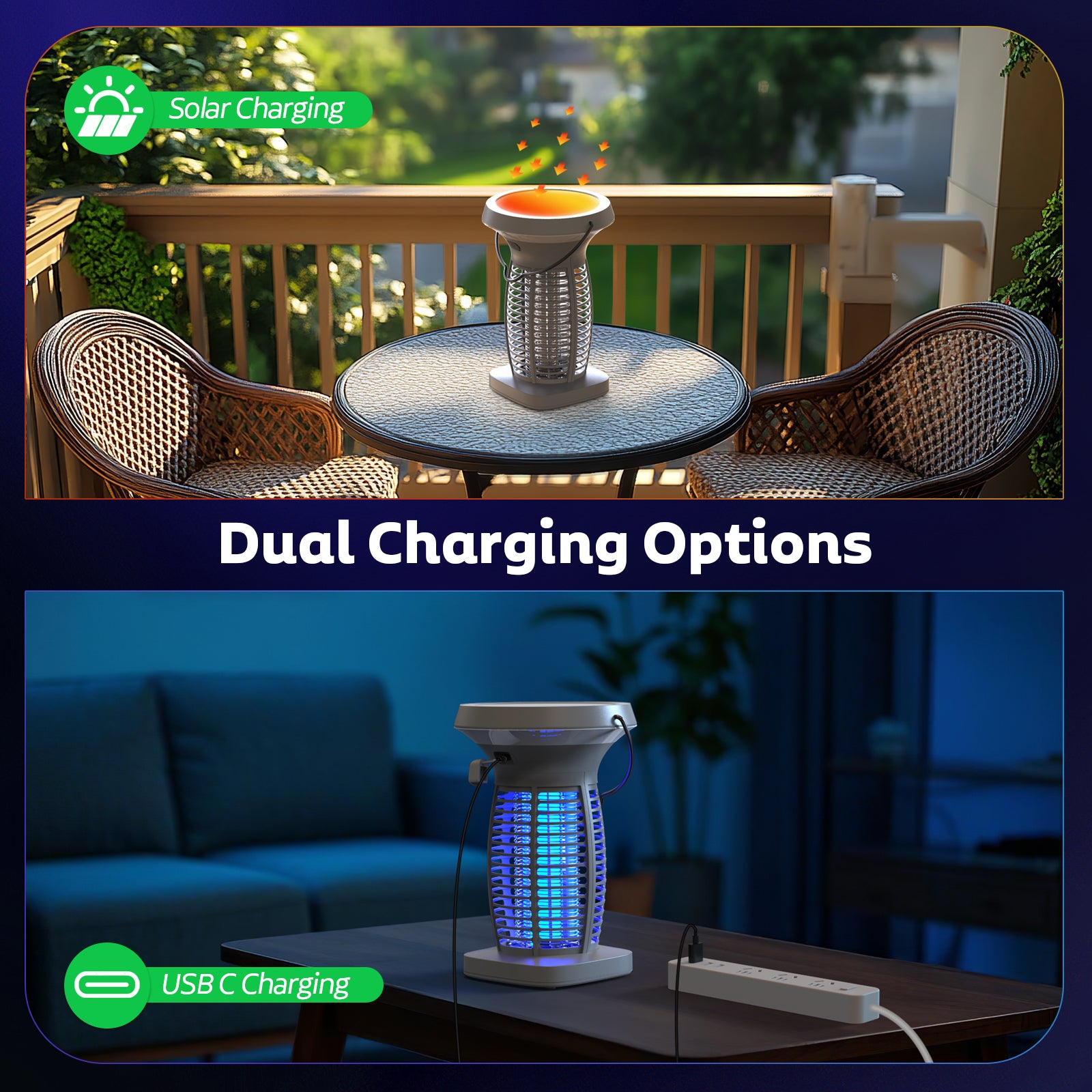 OnBeam Solar Bug Zapper Outdoor, Mosquito Zapper Outdoor Waterproof Electric Fly Zapper Rechargeable Mosquito Killer with Solar Panel, 4200V Fly Trap Indoor for Home Backyard, Patio, Garden, Camping