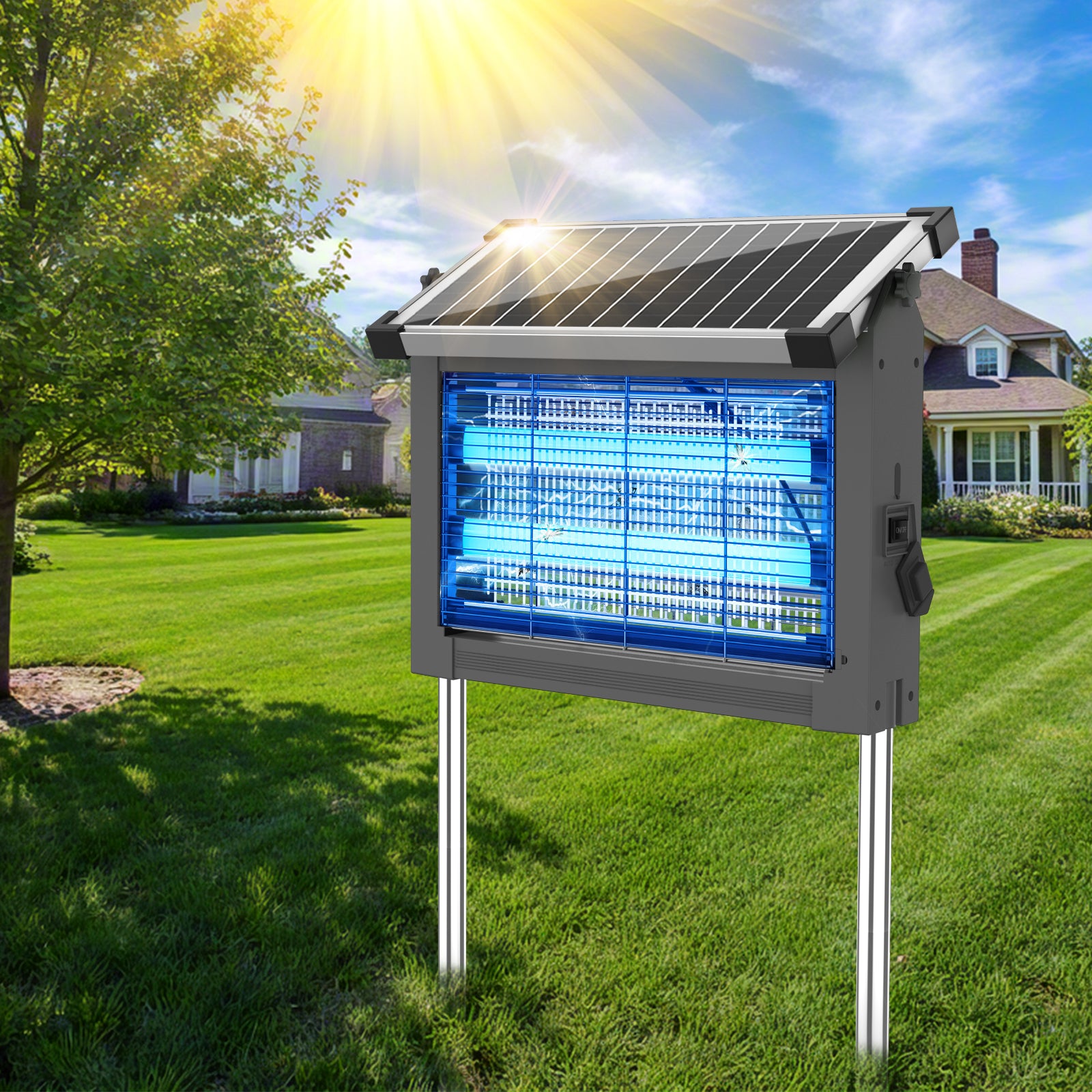 - EPA Registered, Safe for Children & Pets: Designed with safety in mind, our electric bug zapper indoor uses safe, physical mosquito control with no sprays or odors. The sturdy ABS housing features protective mesh around the high-voltage electric grid, preventing accidental contact by kids or pets. With an adjustable solar panel and an extension cord, you can place the fly killer anywhere for effective pest control, offering peace of mind while protecting your family, patio, and home from pests
